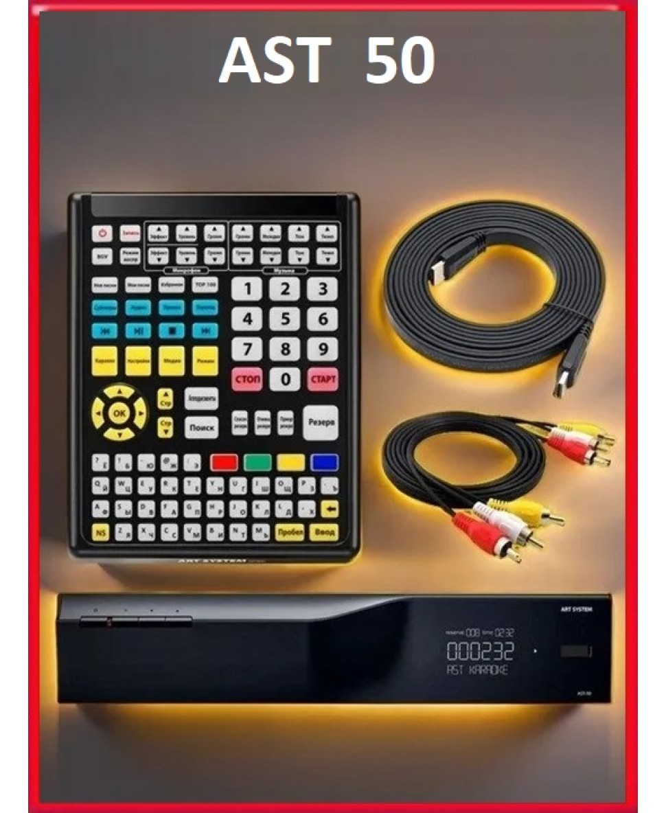 АСТ-50 включает в себя все, что необходимо для караоке, для отличного пения. Данный аппарат оснащен процессором для обработки звуковых эффектов и обработки голоса исполнителя, а также предоставляет массу других возможностей для начинающих и уже опытных любителей попеть в караоке. Обладая таким аппаратом Вы не задумаетесь ни о каком другом дополнительном оборудовании, которое будет лишь загромождать пространство вокруг . Мощный и стильный AST-50 не нуждается ни в каких дополнениях. Достаточно подключить его к телевизору и микрофону и можно начинать караоке-вечеринку.