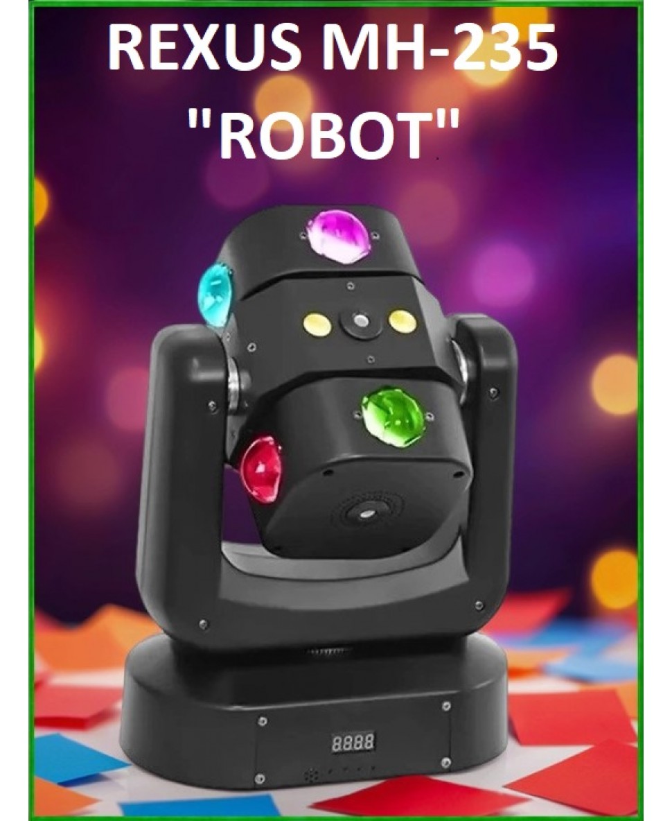 REXUS MH-235 "Robot" - идеальное сценическое оборудование для дискотек, концертов, свадеб и других мероприятий. Благодаря своим возможностям и функциям, этот световой прибор создаст неповторимую атмосферу и подчеркнет важность каждого момента вашего выступления.
