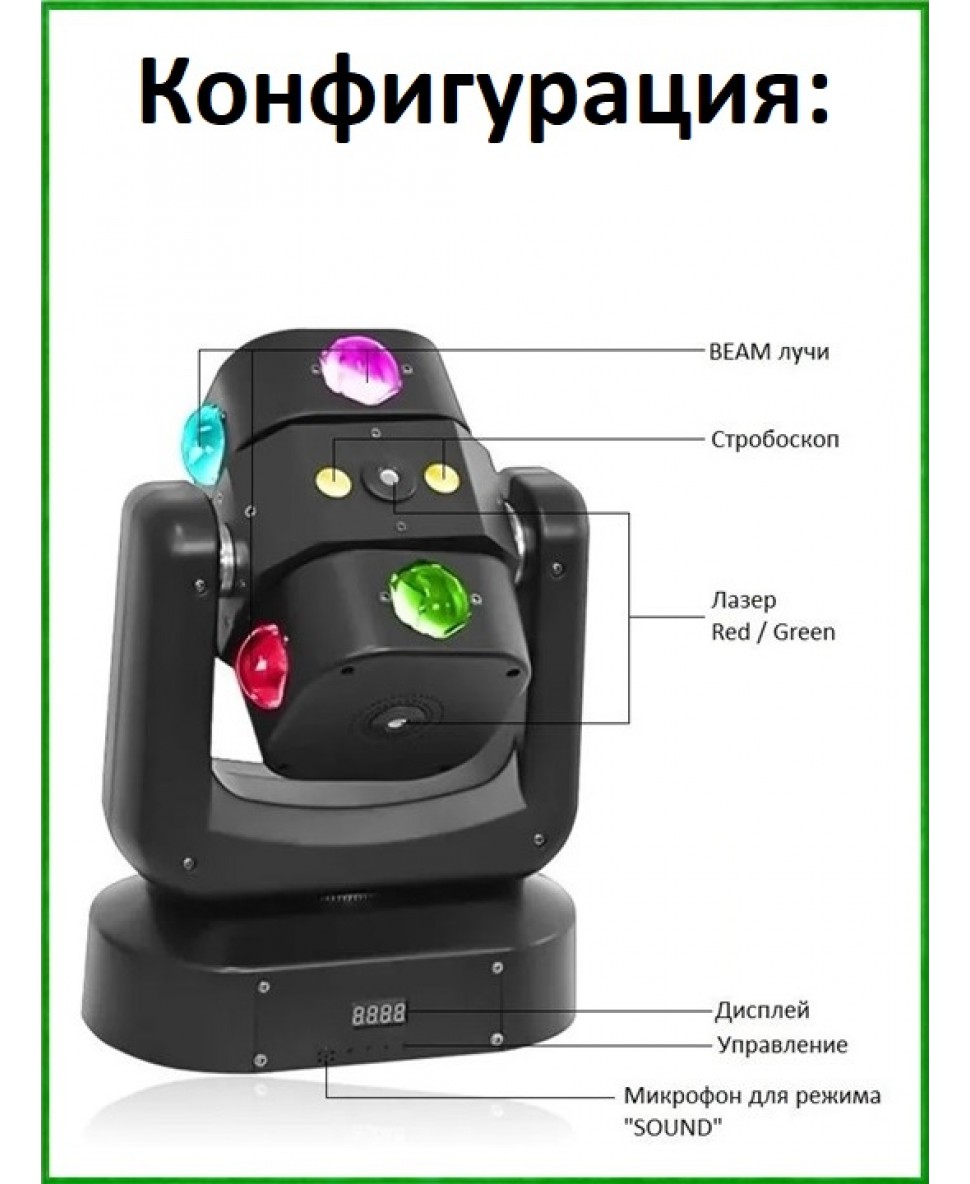 REXUS MH-235 "Robot" - LED голова вращения, лучи BEAM 8*10Вт (RGBW), Стробоскоп, Лазер Red/Green