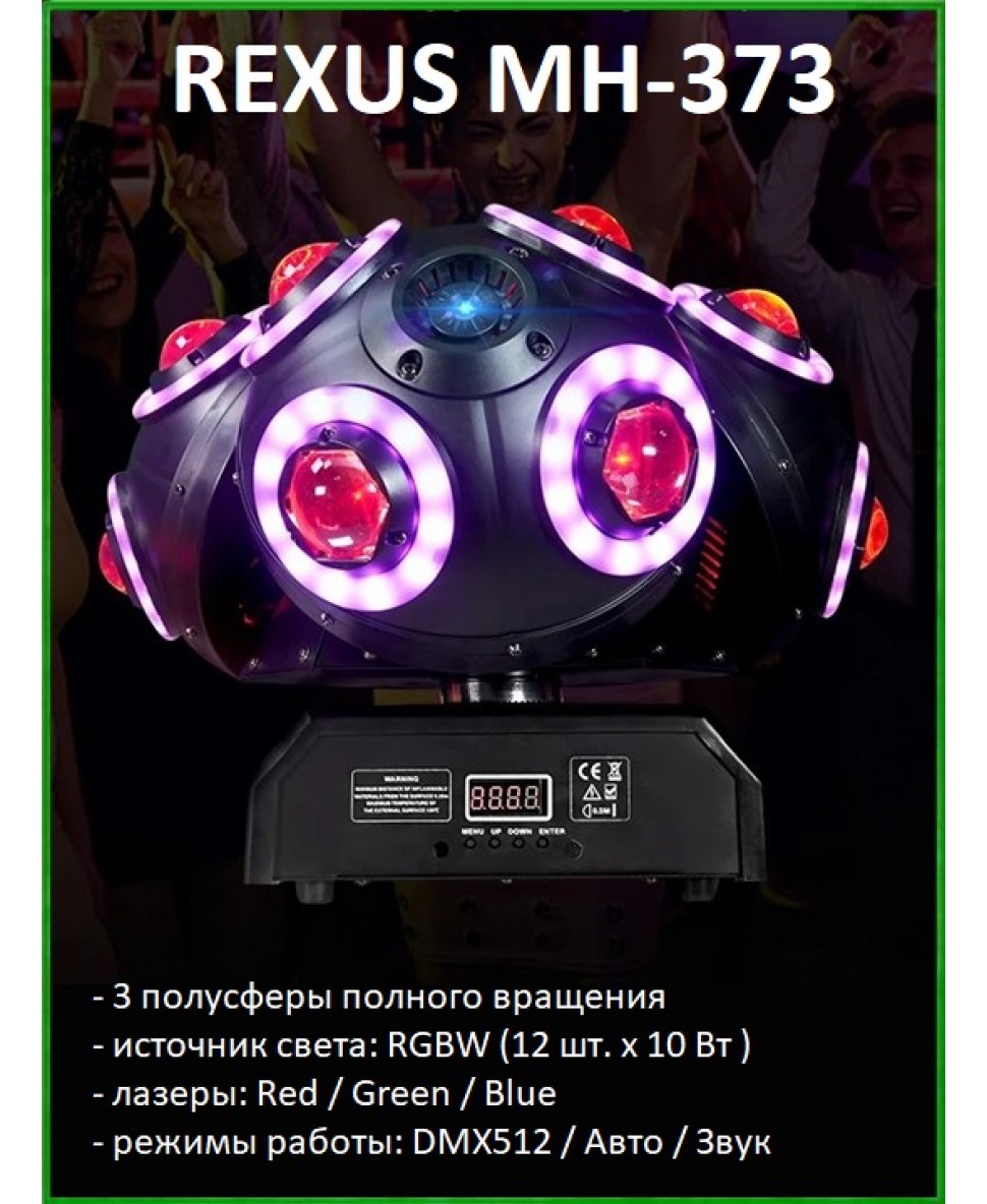 REXUS MH-373 "ASTRA" - голова вращения, лучи BEAM 12*10Вт (RGBW), лазер R/G/B