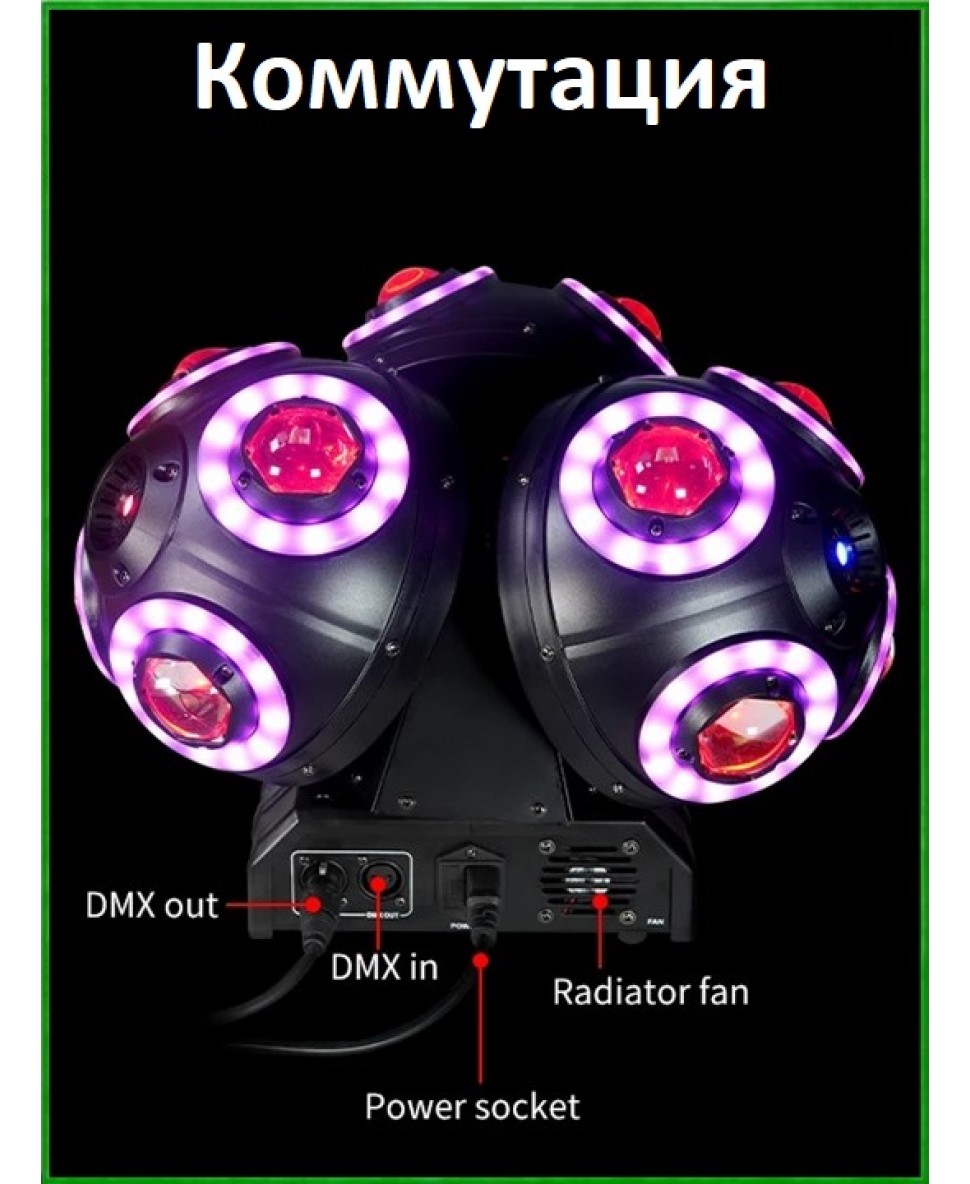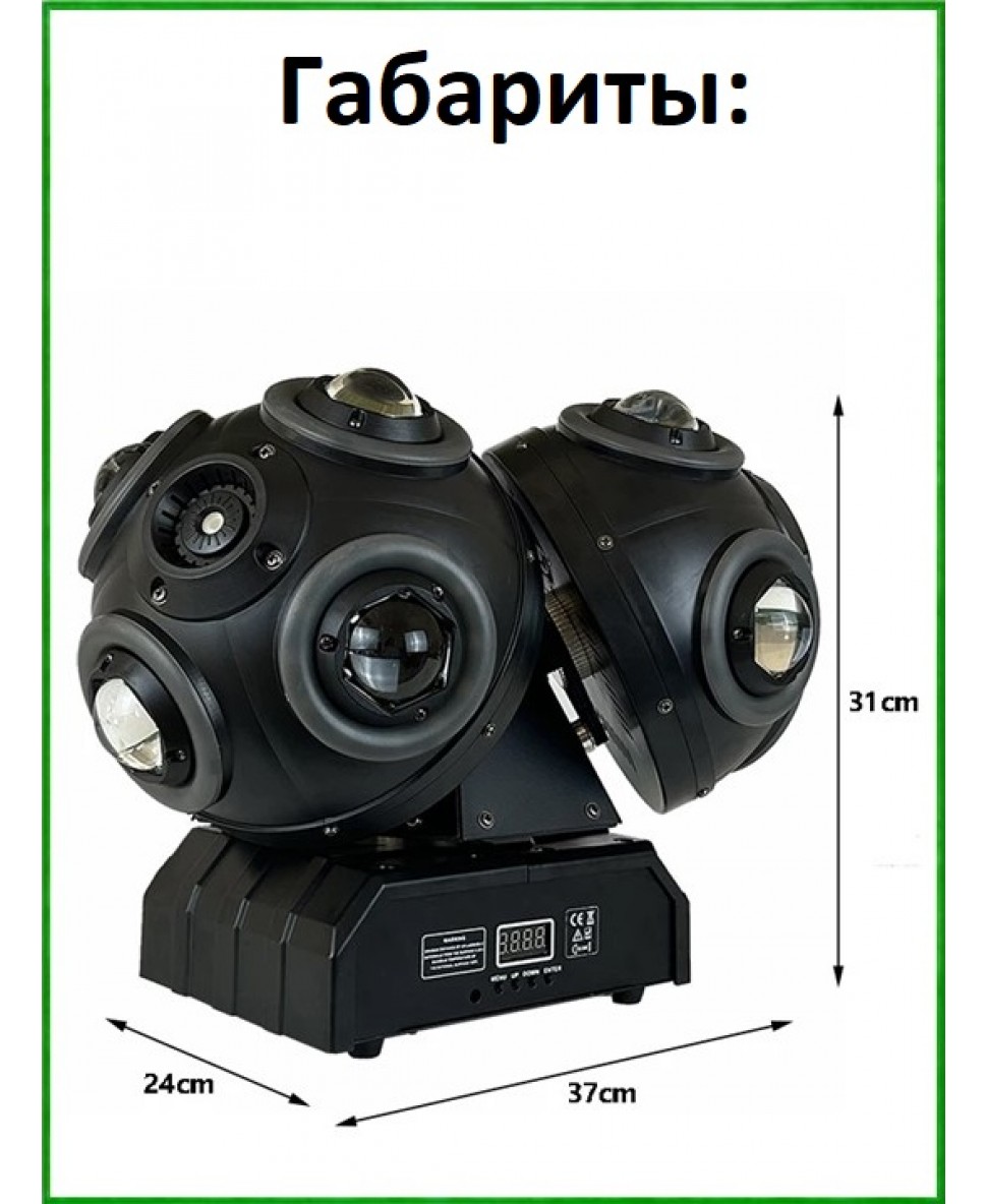 Устройство работает от стандартной электросети и предлагает до трех программ управления, позволяющих легко менять атмосферу пространства. Компактный формат и легкая сборка делают его универсальным выбором для концертов, вечеринок или презентаций.