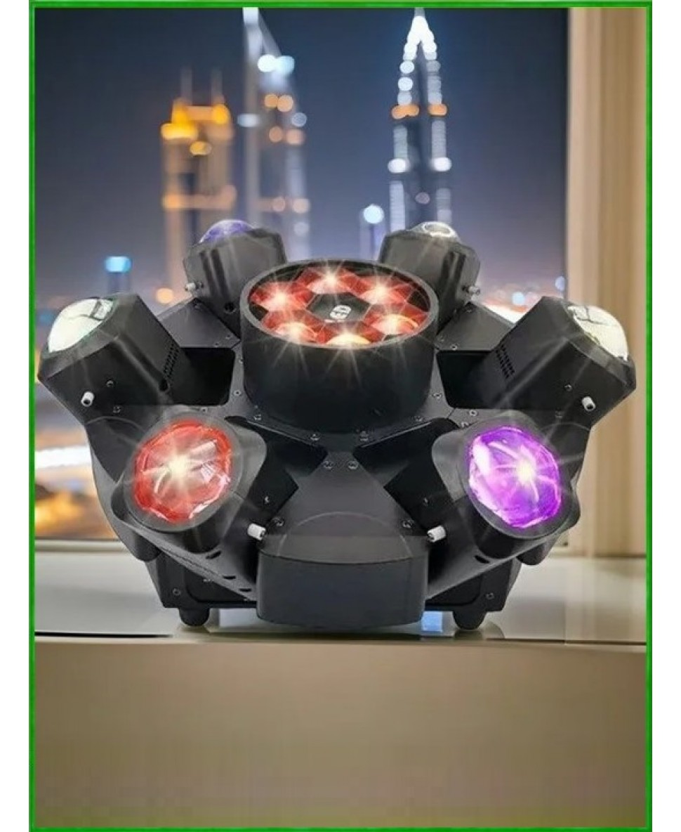 Голова вращения позволяет создавать уникальные световые эффекты, привлекая внимание зрителей. Лучи BEAM мощностью 6 х 30Вт (RGBW) создают яркие и насыщенные цвета, которые будут прекрасно смотреться на любом мероприятии. Дополнительно, прибор оснащен эффектом "BeeEye" мощностью 6 х10Вт (RGB), который добавляет динамичности и разнообразия в световое шоу.