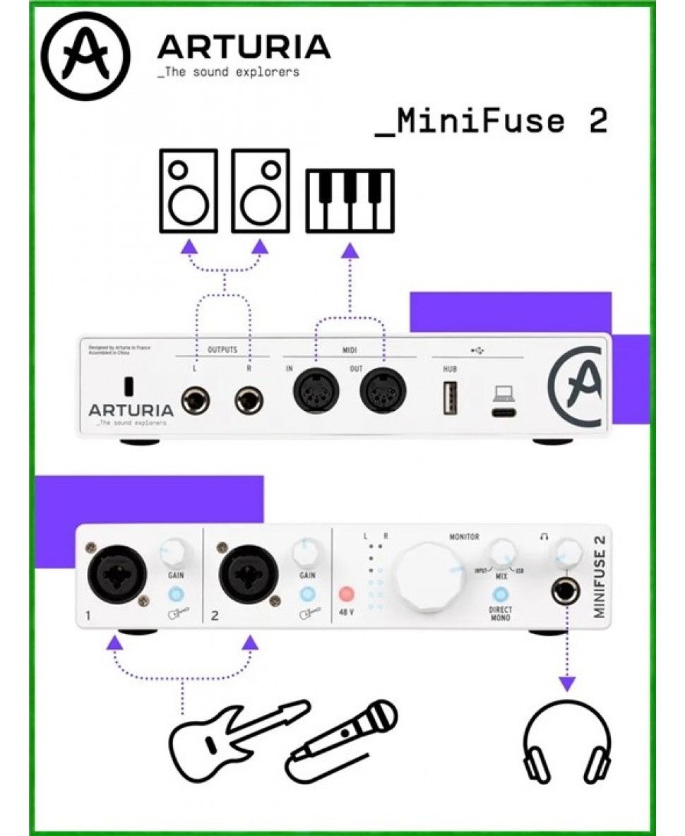 MiniFuse может похвастаться динамическим диапазоном 110 дБ и эквивалентным входным шумом -129 дБ, что означает непревзойденную чистоту и динамику звука. Любая запись будет звучать идеально.