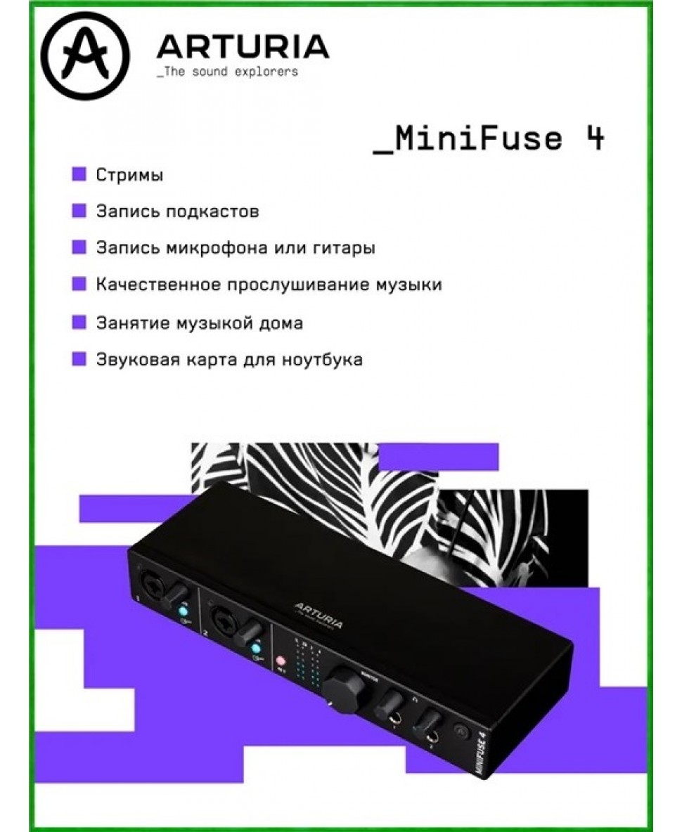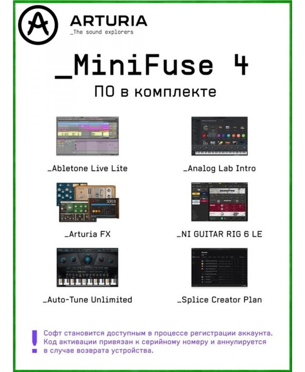 MiniFuse поставляется с набором программного обеспечения, в котором есть все необходимое для создания вашего звучания. Ableton Live Lite, Analog Lab Intro, Splice, Autotune unlimited - список можно долго продолжать.